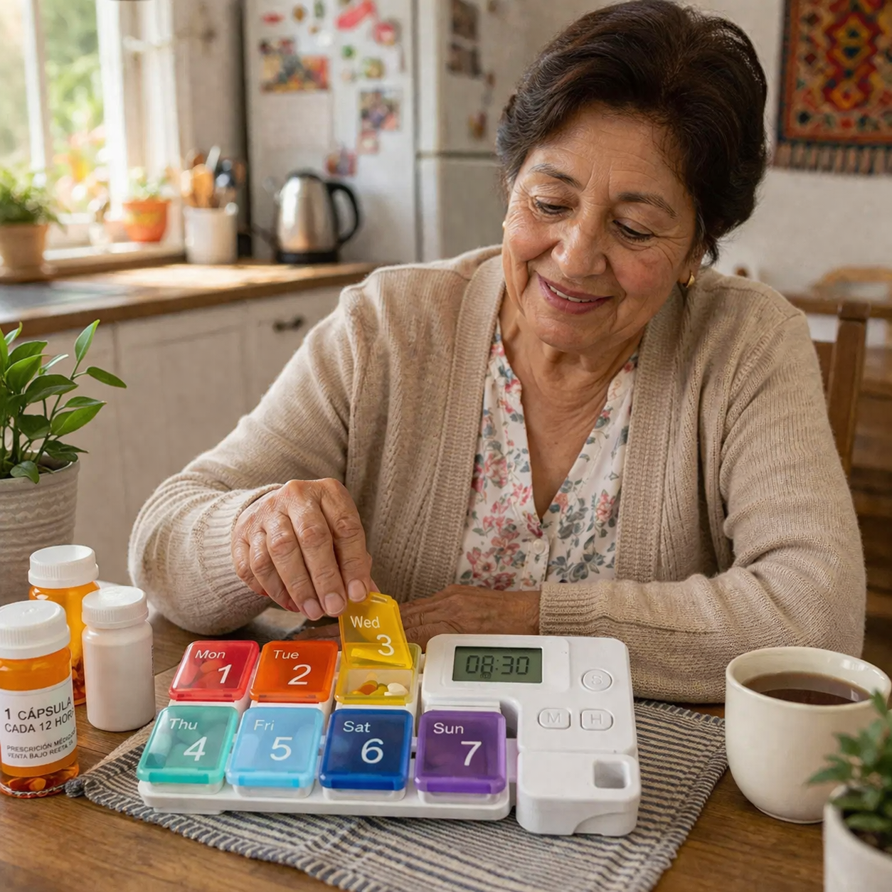 Tecnología inteligente diseñada para ayudarte a organizar tu medicación de forma fácil, segura y sin estrés, desde casa o donde vayas. Porque mereces sentirte tranquilo todos los días, sin olvidos, sin confusiones y sin preocupaciones.